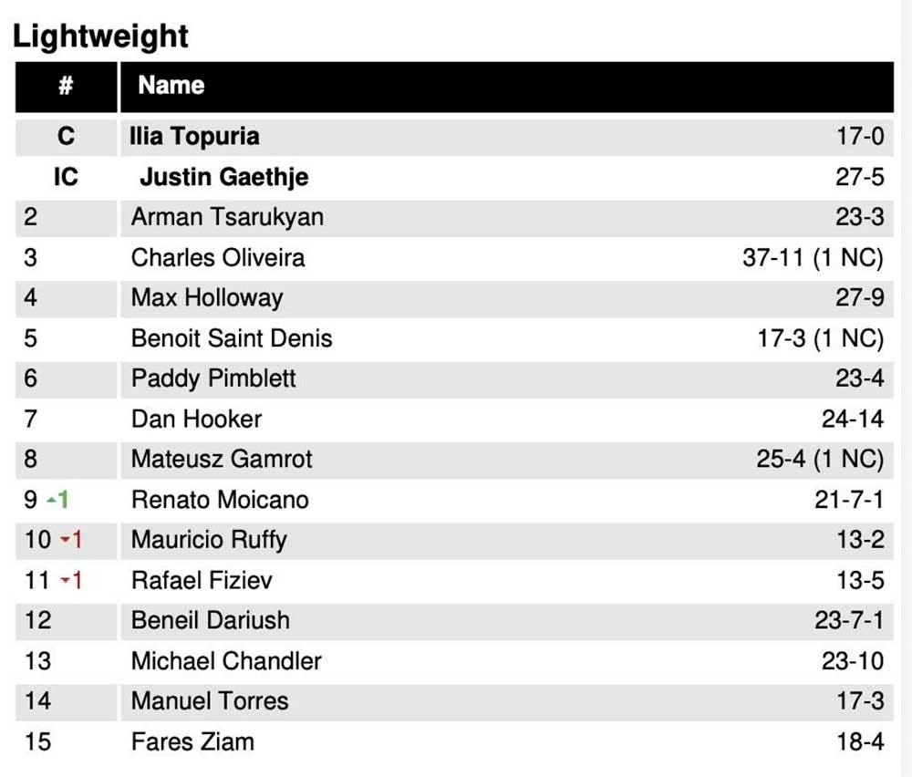 Состоявшийся в минувшие выходные турнир UFC Fight Night 272 привёл к незначительным изменениям в рейтинге двух дивизионов организации.