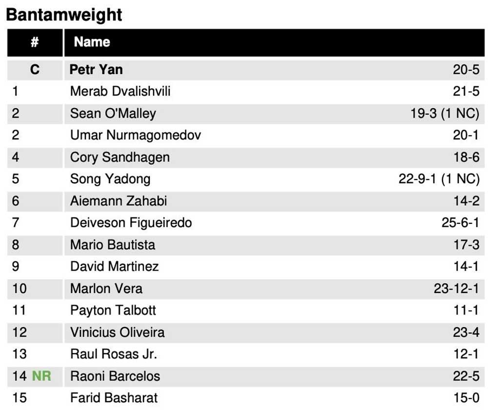 Обновлён рейтинг UFC: Стерлинг подвинул Родригеса, Эдвардс в топ-3